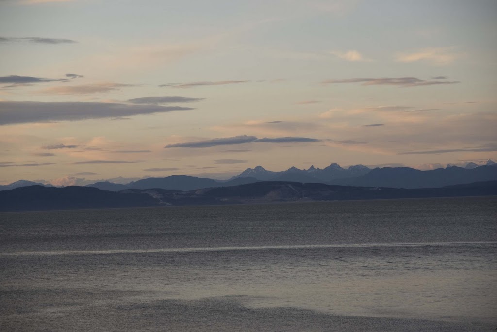 Pendant la traversée, Heather a contacter un club de villégiature et mes yeux se sont fermés sur un couché de soleil inoubliable. De mon lit, il y a la fenêtre, une petite falaise puis, l’océan jusqu’au pied des montagnes de la côte au nord de Vancouver. J’ai bien dormi, ayant en tête les couleurs vive du couché du soleil. À mon réveil, j’ai été surpris d’être tout aussi émerveillé par les couleurs douces de l’aube. Nous allons rester ici 4 nuits avant de retourner à Vancouver.