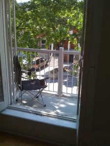 De retour à la maison, je l’ai bien examiné et je crois qu’elle n’a rien de plus que de la fatigue d’avoir descendue toutes ces marches. Elle est maintenant en boule sur le balcon et elle dort à poings fermés!