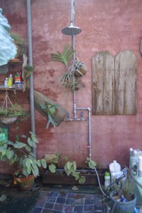 Ghis has fallen in love with their school bus. They bought a short school bus and took out all the seats and are making it into a camper. They have put in a wood floor and it looks lovely with all the windows. We are envious of all the space it has. The other thing we love about their house is their complete outdoor bathroom.
