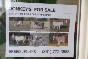 Posted on December 23, 2009 by featherdavisTexas – Beaumont to San Antonio Driving past Houston. We have arrived in San Antonio and are going to do the river walk today. It’s already warm and humid a bit. These are some pictures from yesterday’s drive. Ghis took a nap while Morgane and I explored Flatonia. Donkeys for sale