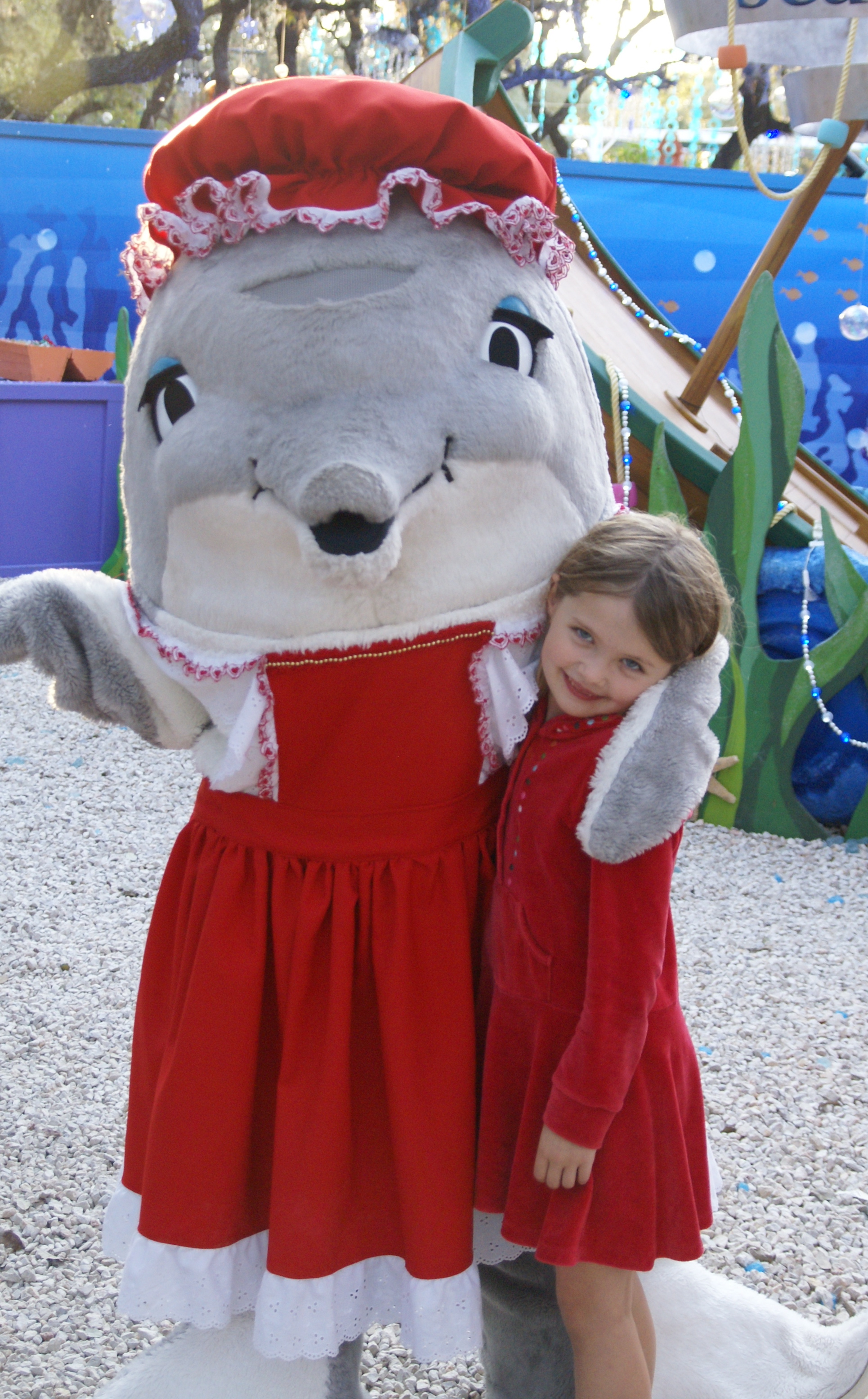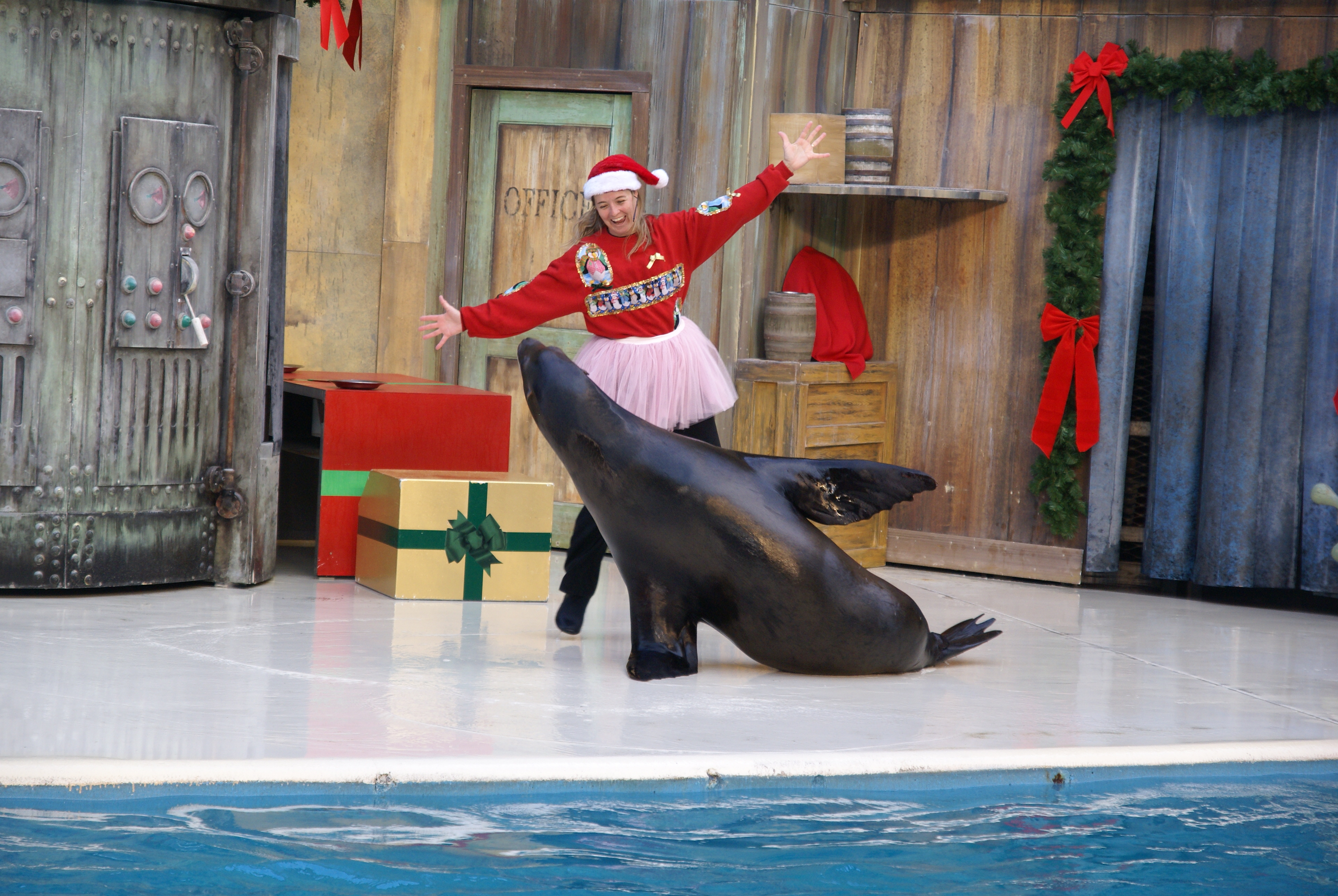 Later on was the show I remembered most from my visit to Sea World, San Diego, when I was a teen: the sea lion show! It was as funny as I remember. The sea lions even danced to the nutcracker. Then they read Twas the Night Before Christmas and instead of Santa coming down the chimney, a huge pinky-white walrus appeared out of nowhere!