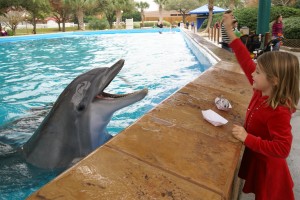 The first thing we did was buy trays of fish to feed the dolphins. The edges of the pool are low so you can reach over and toss the fish into a hungry dolphin’s mouth. We loved it so much that we had to buy more food. Then more because we learned that it was the best way to get to pat the dolphins. It really isn’t the kind of experience we can have back home anyway.