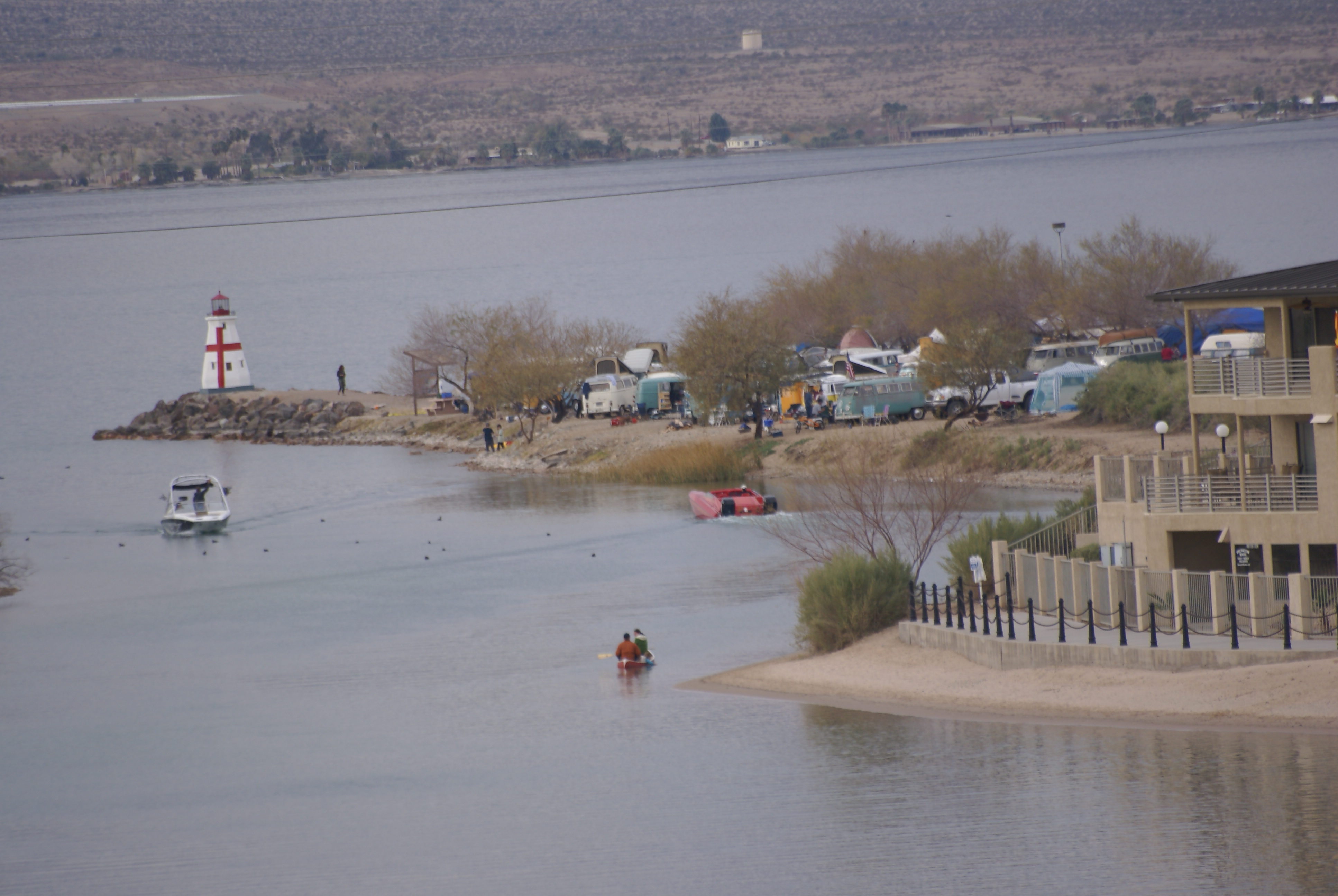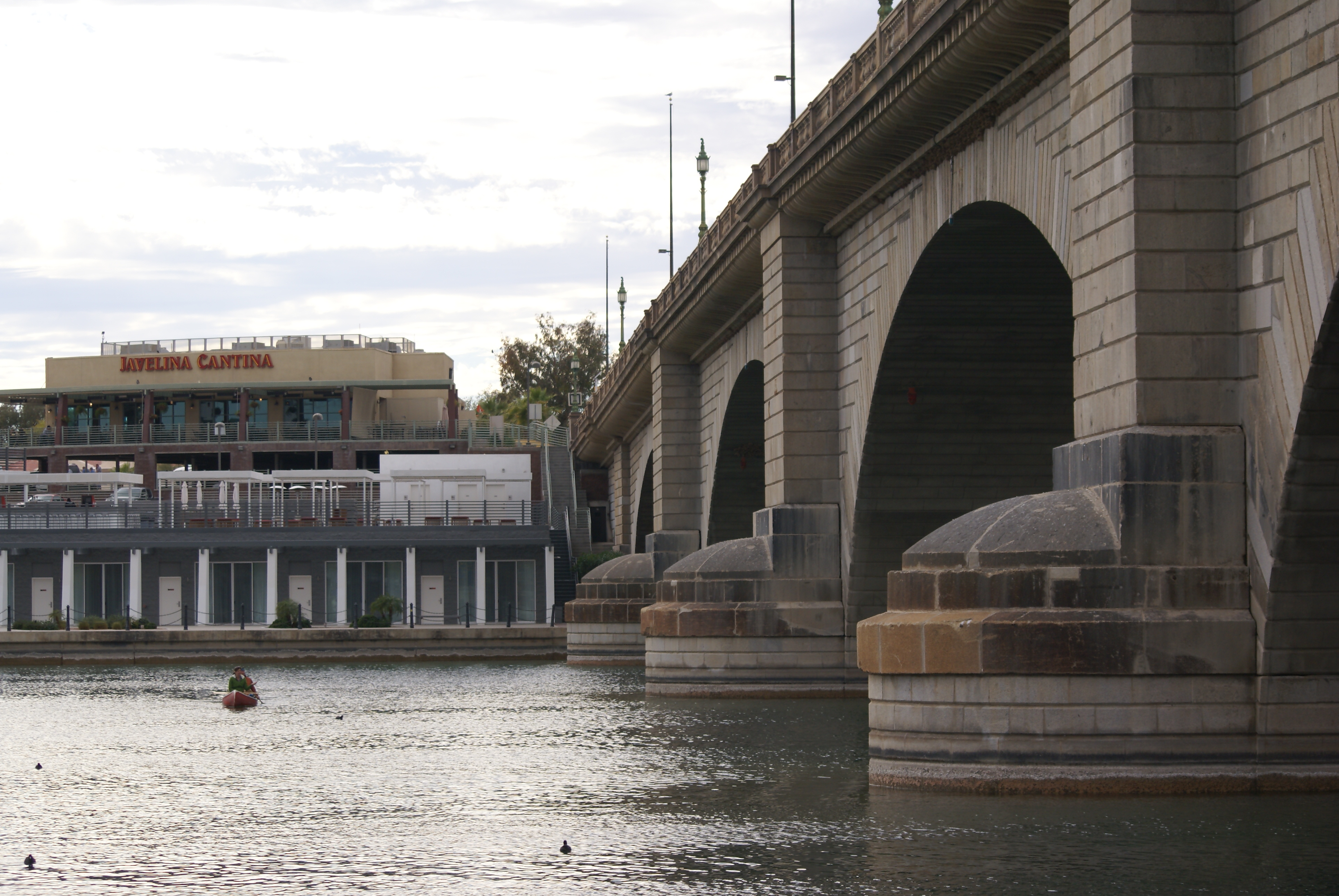 Our super VW neighbour loaned us his canoe to go see London Bridge. I know it may be hard to believe that London Bridge is in Arizona at Lake Havascu, but it is. It seemed odd to me when I first heard about it, too. I wondered why they didn’t keep it in England somewhere, but I guess they needed someone to take it and pay for it as well.