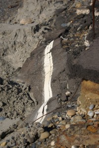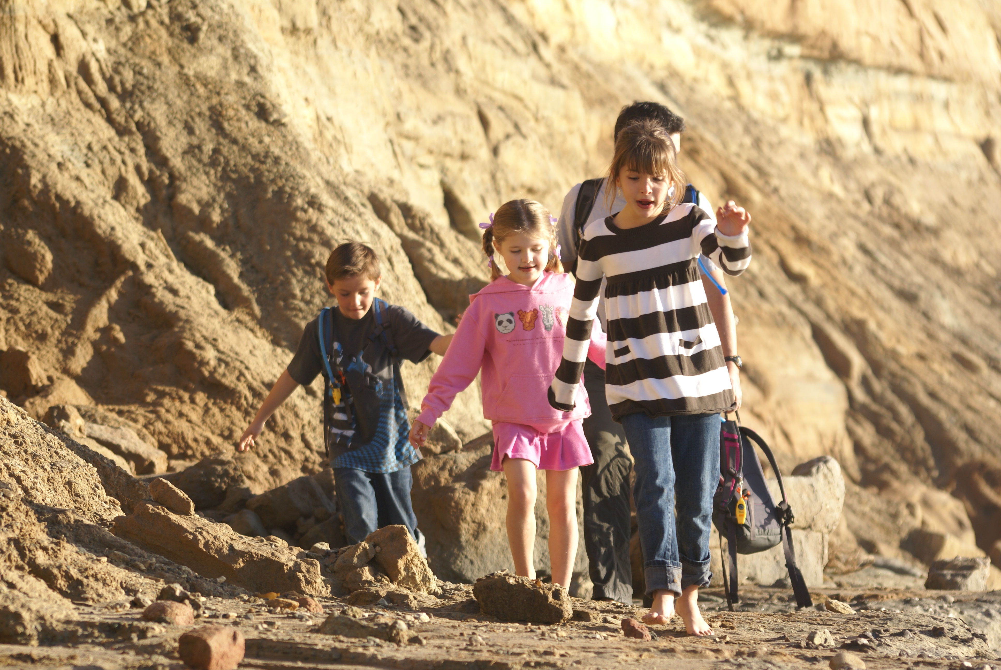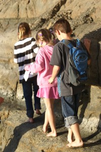 Since it was easier to walk along the beach than to walk back up the hill and down the other side, we took off our shoes and alternated sprinting over the sand with shuffling along a dry ledge.