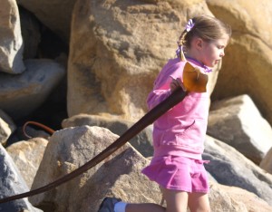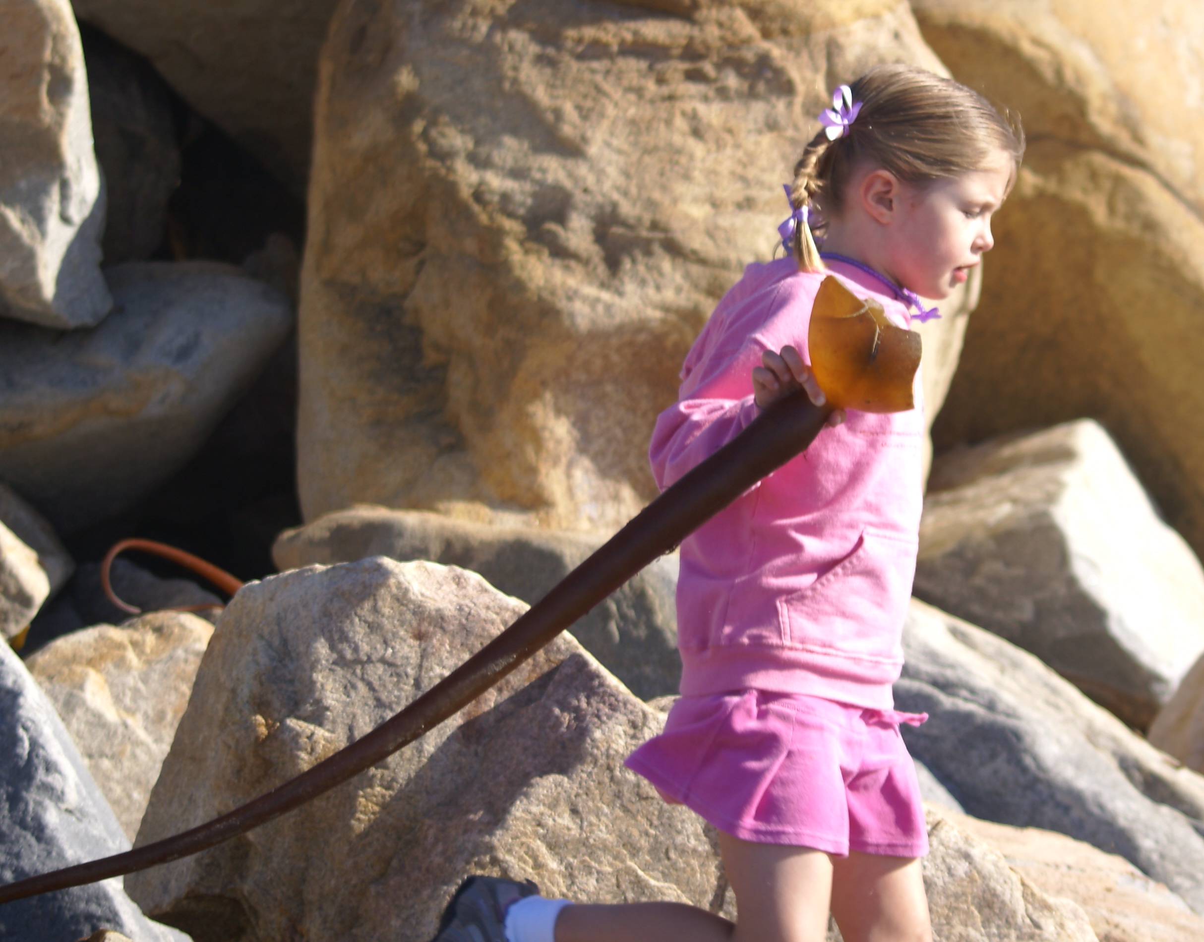 Morgane loved the giant kelp that was washed up on the beach. She even tied one around her waist and walked along, dragging it behind her.