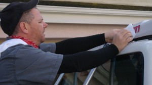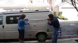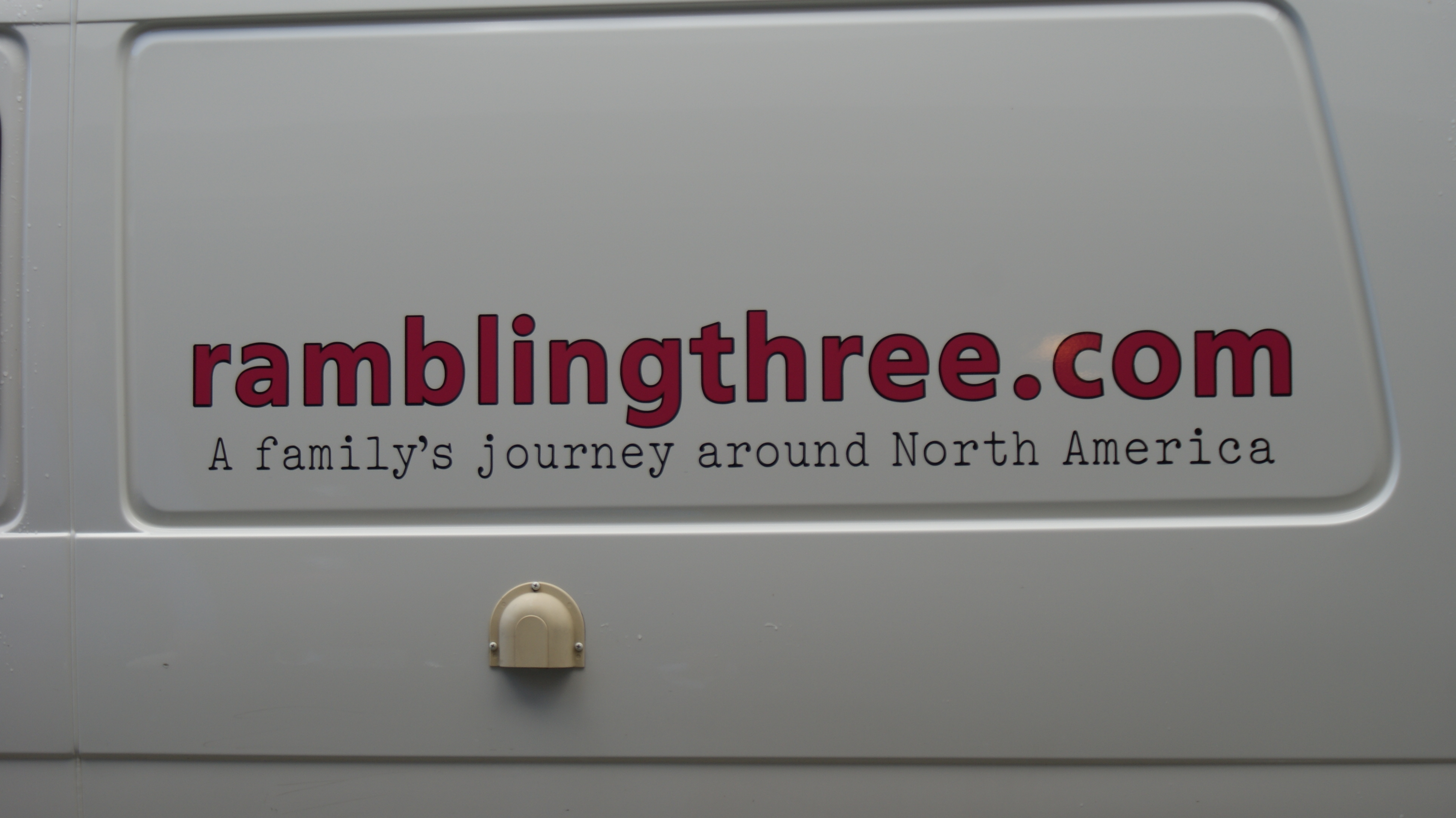 Today we slept in and then had the exciting job of putting our new stickers on the van! We ordered them from our Buses by the Bridge neighbour, Scott, of Pinsville in Las Vegas and they came in the mail very quickly. I felt strange putting something on our van, but Ghis seemed happy about it. I still can’t believe that Ghis consented to us putting something pink up.