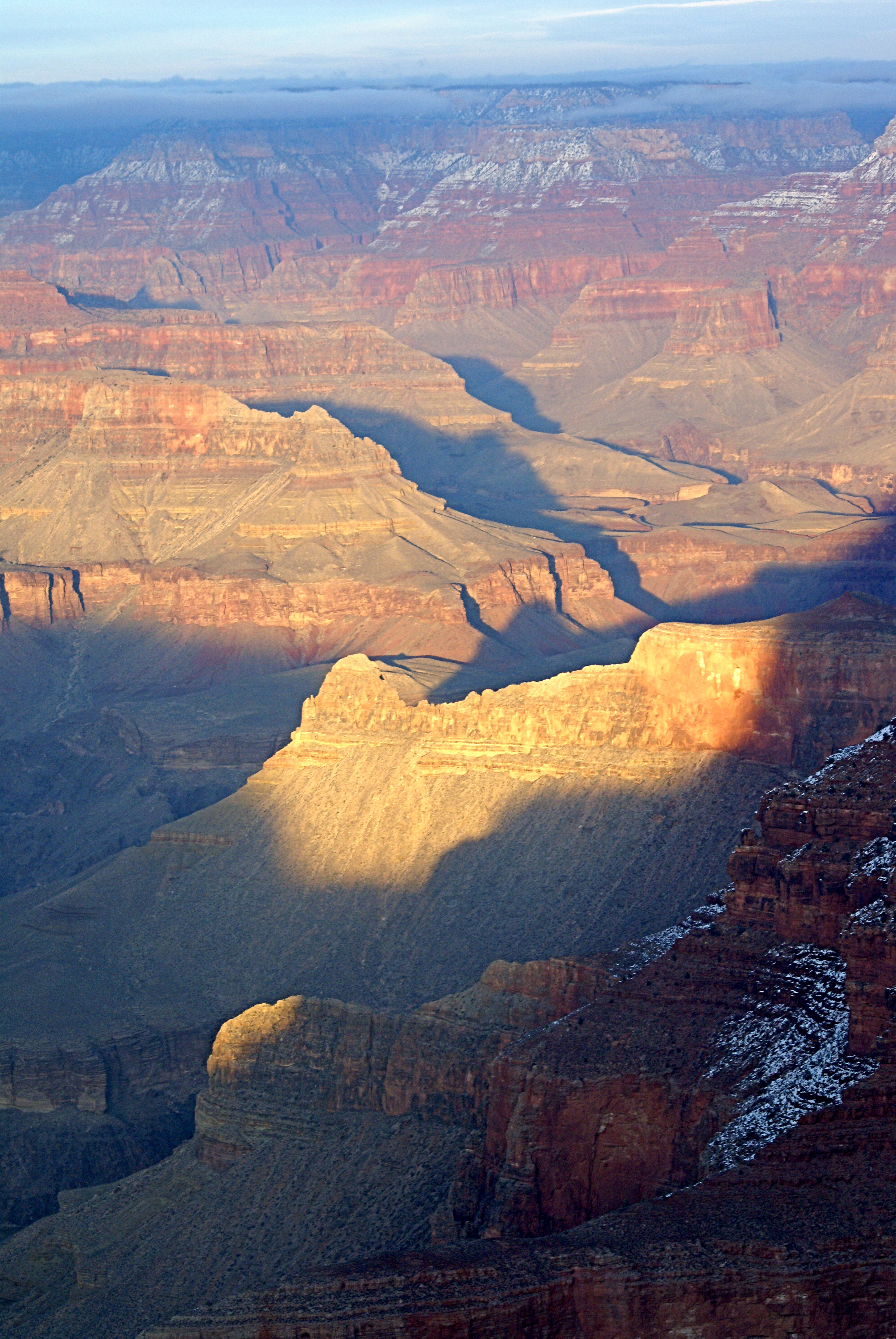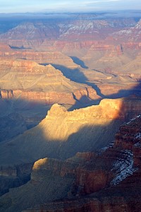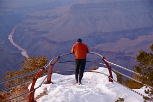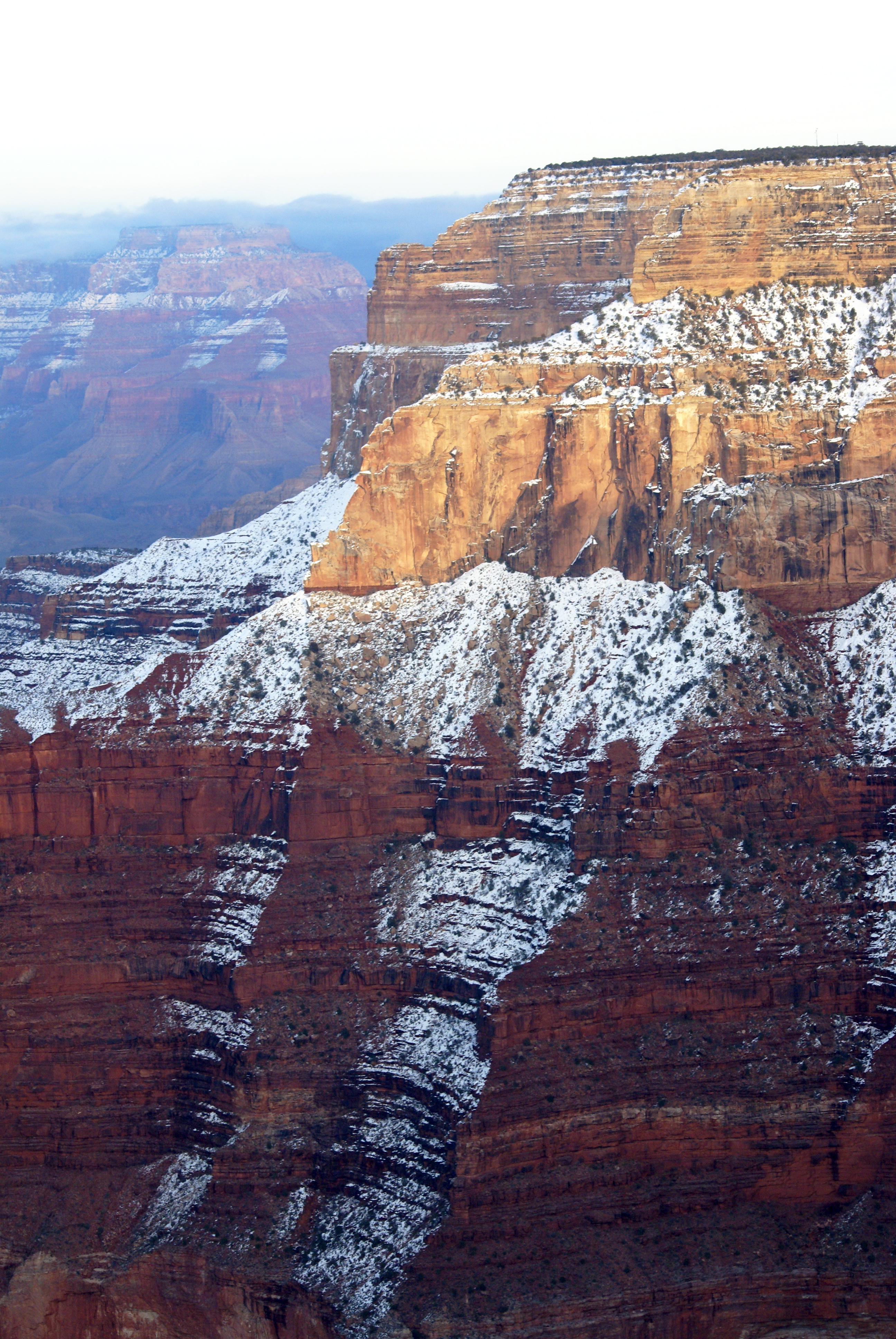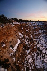 You can’t hike down into the canyon in the winter without ropes and crampons, but it must be amazing. The canyon was carved out by the Colorado River. The layers that we can see in the canyon reflect the history of the earth – each layer shows a different time.